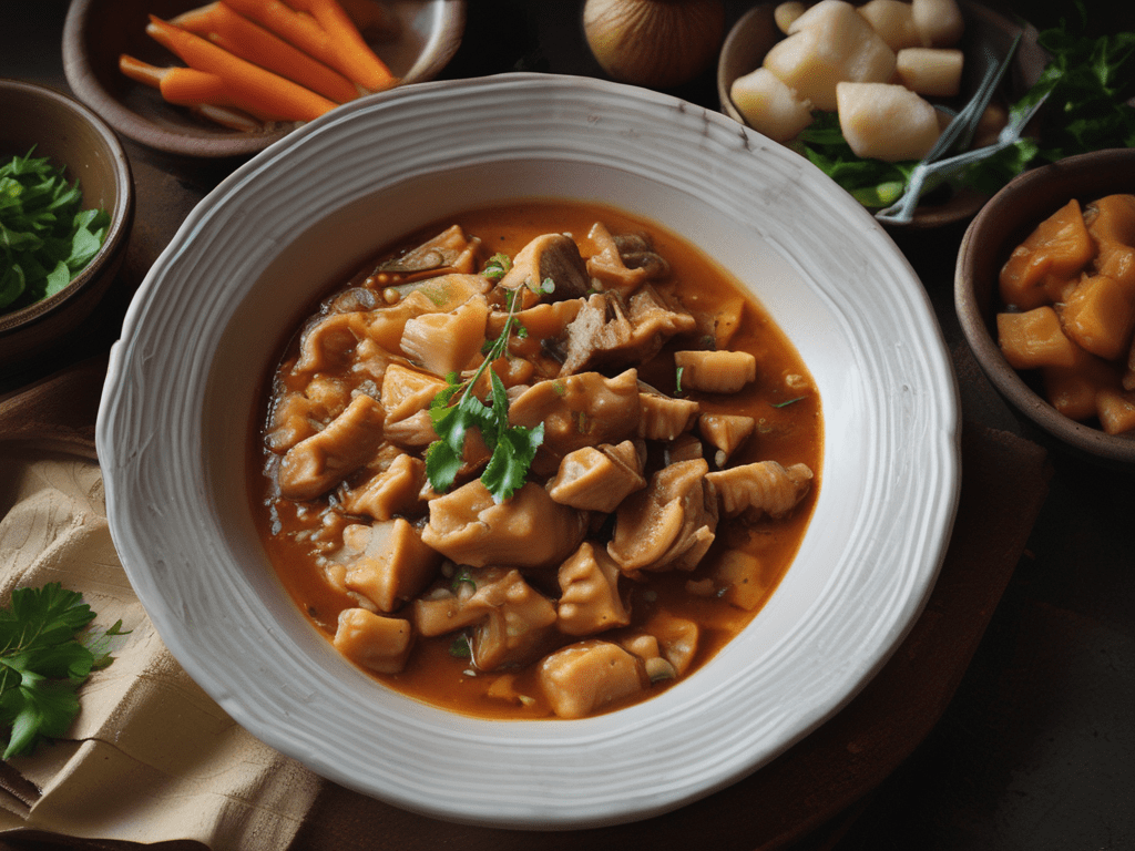 ¡Listo! Disfruta de este delicioso platillo de mondongo con verduras.