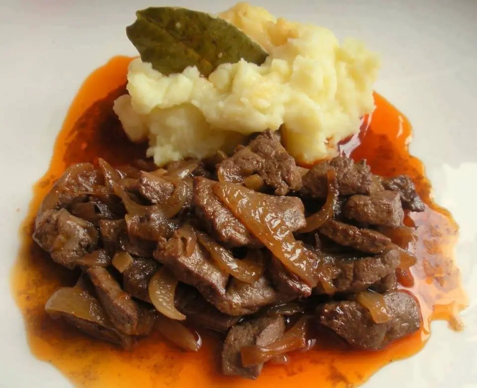 Sirve el hígado de res encebollado caliente y acompáñalo con arroz blanco o una arepita asada.