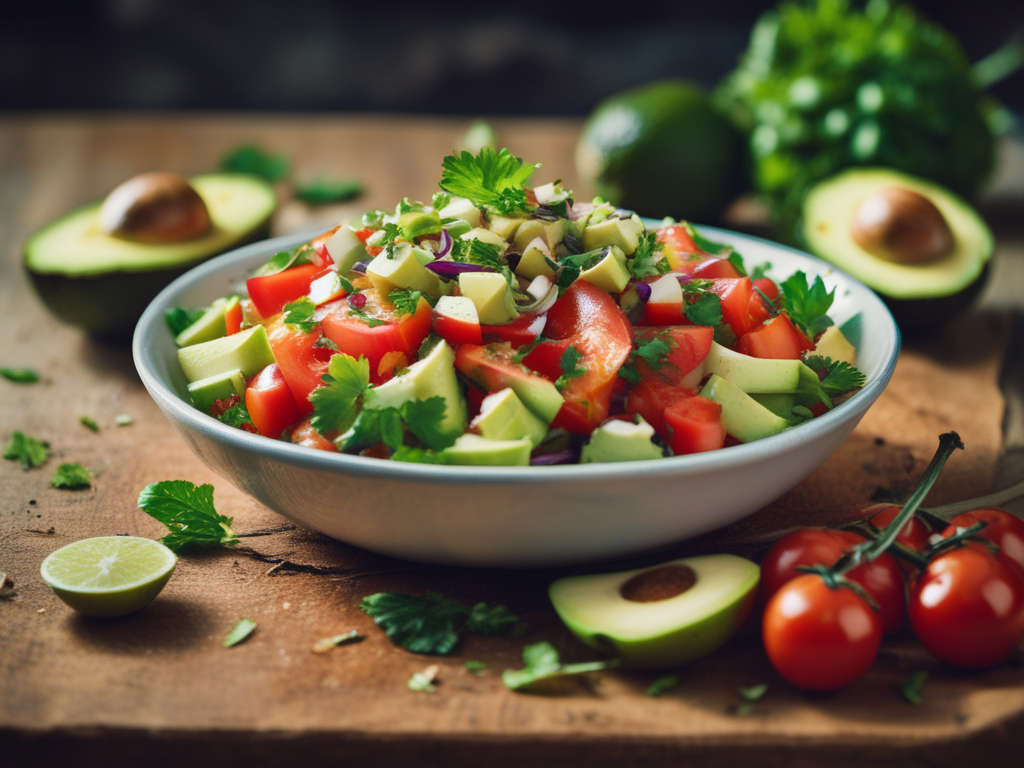 ¡Disfrute esta refrescante ensalada de tomate y aguacate, perfecta como acompañamiento o como plato principal ligero!