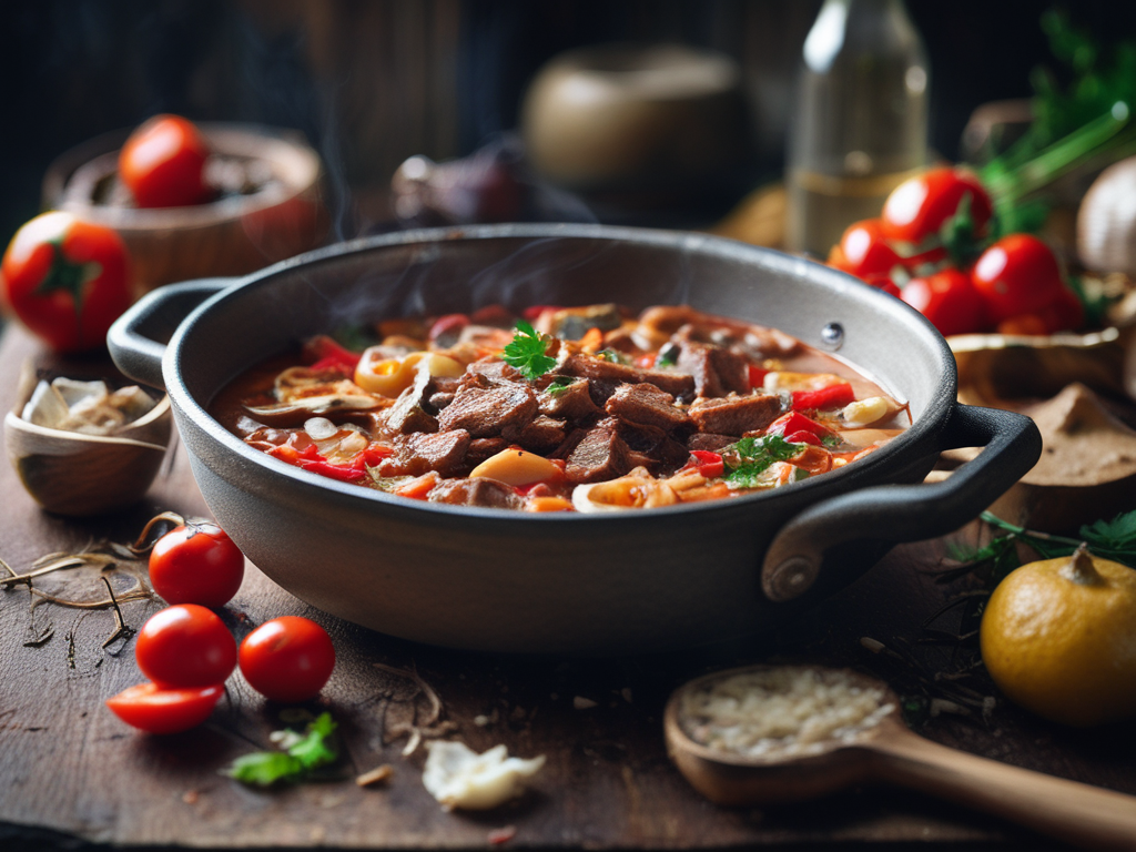 - Se corta la carne en trozos cuadrados medianos, se cuecen ligeramente en una sartén con el vino y en la mitad de la cocción se incorporan los champiñones picados y se continúa hasta que se consuma el caldo.