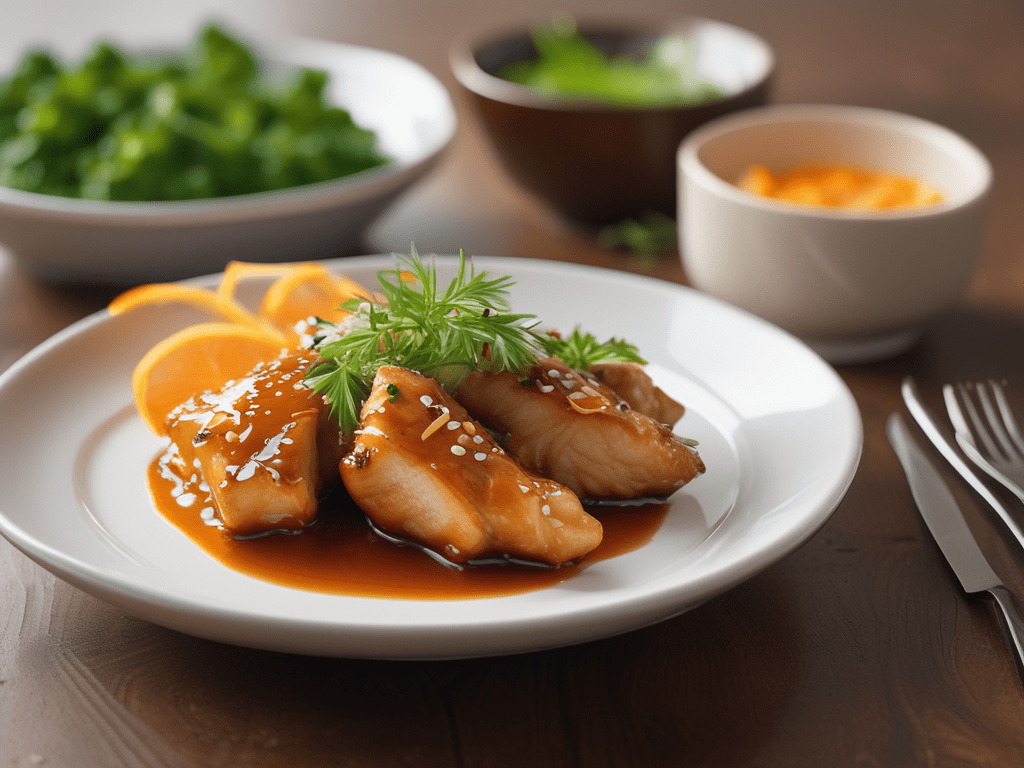 - En un recipiente, disolver la mostaza dulce, la salsa china, el zumo de las naranjas, la harina, el vino tinto y el caldo.