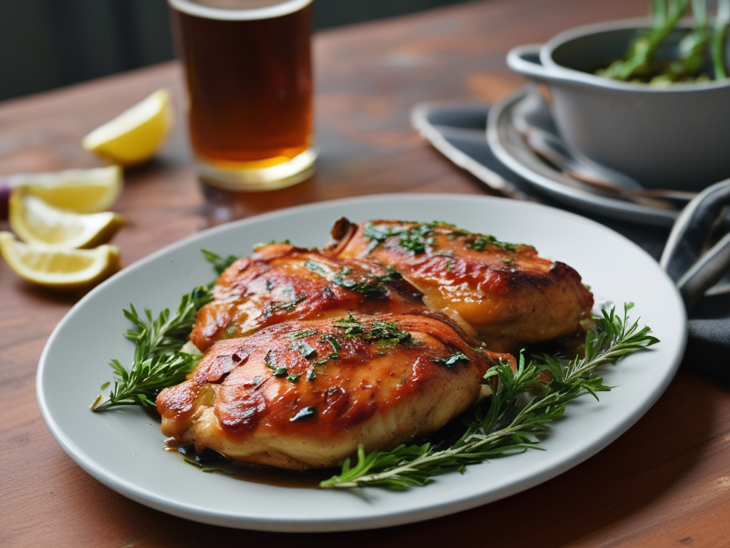 - Vierte la cerveza sobre los muslos y cocina a fuego moderado durante 25 minutos, hasta que el pollo esté bien cocido.