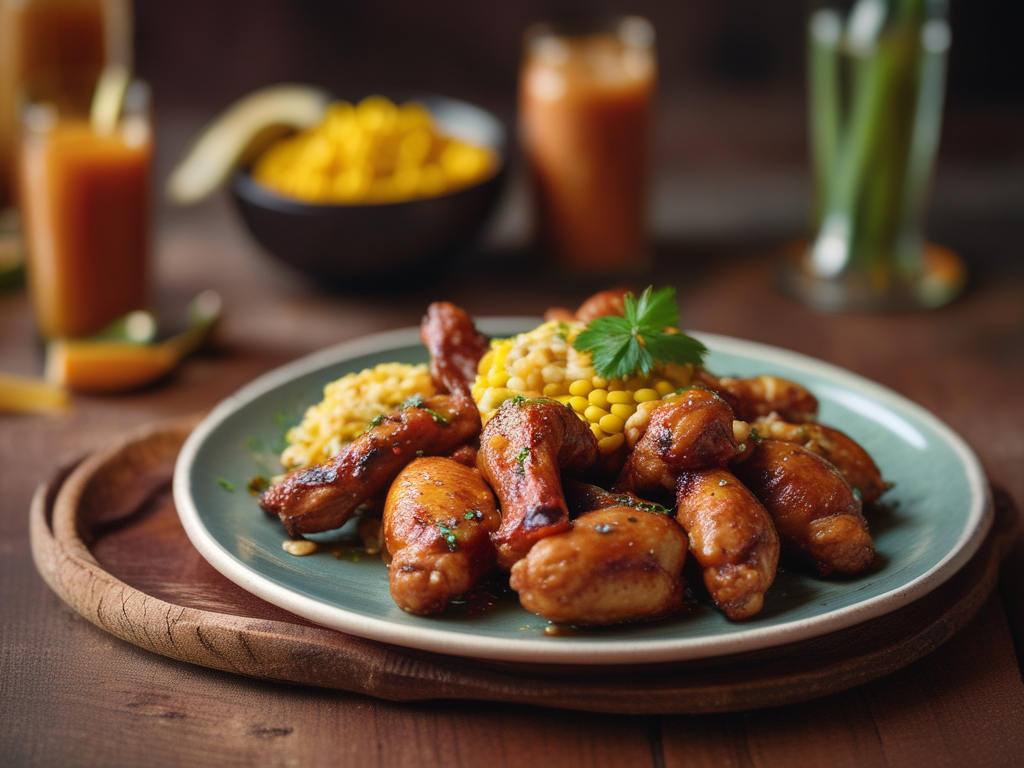¡Disfruta de estas deliciosas alitas de pollo con salsa de mostaza y miel acompañadas de arroz y maíz dulce! No dudes en dejar tus comentarios y sugerencias en la publicación para mejorar la receta.