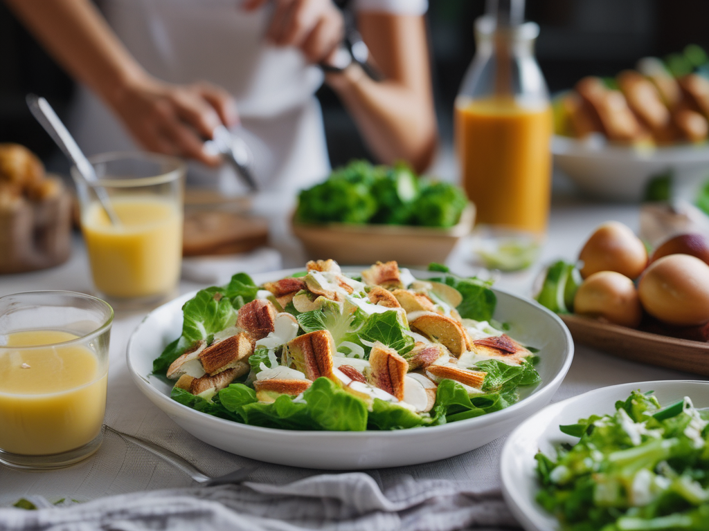 - Aliña con la salsa César y sirve de inmediato para que el pan no se ablande con la salsa.