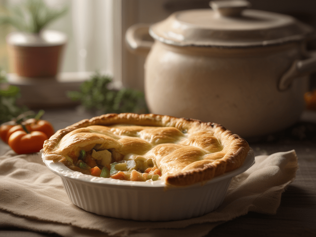 - Rellena el molde forrado con la masa con las piezas de pollo, las verduras y el líquido de cocción.