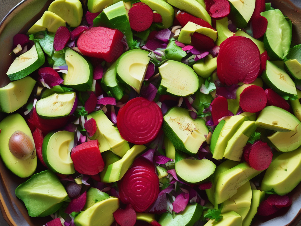 - Mezcla los ingredientes: En un bol, combina la remolacha cocida, el aguacate picado y la cebolla roja.