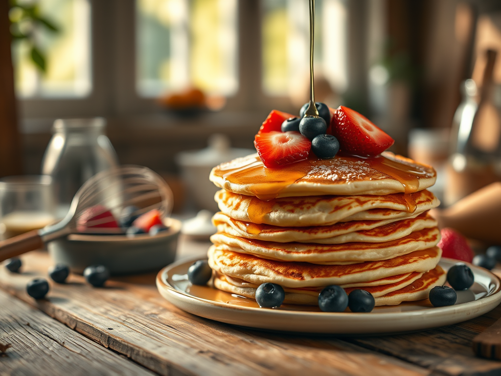 - Sirve los Pancakes calientes y acompáñalos con miel, jarabe de arce o frutas frescas al gusto.
