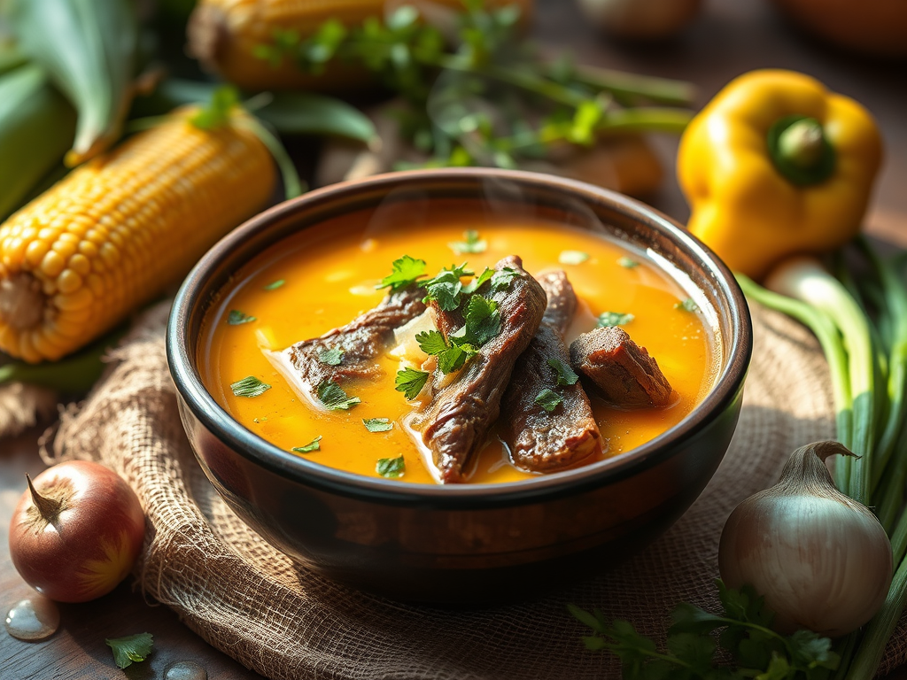Tip de cocina: Para un sabor más intenso, puedes añadir una pizca de achiote al sofrito o cocinar las mazorcas enteras en el caldo antes de desgranar y moler el maíz.
