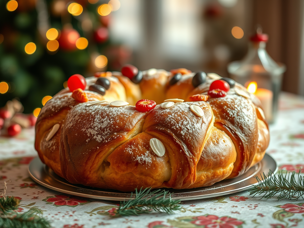 Sirve esta deliciosa rosca con una taza de chocolate caliente o café para realzar la experiencia navideña.