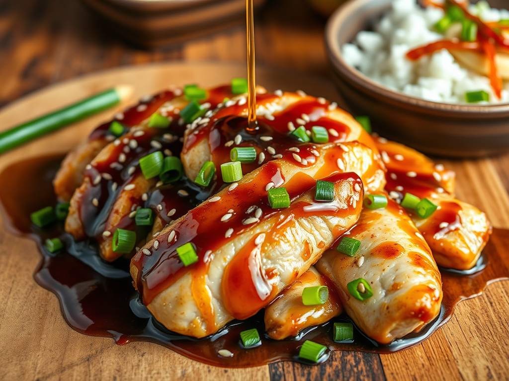 Para un toque extra de sabor, espolvorea semillas de sésamo y cebolleta picada al servir. Además, si prefieres un sabor más picante, añade una pizca de chile en hojuelas al glaseado.