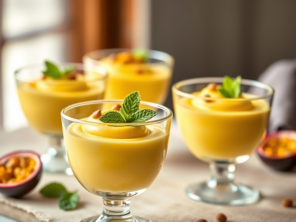 - Hojas de menta y semillas de maracuyá (para decorar).