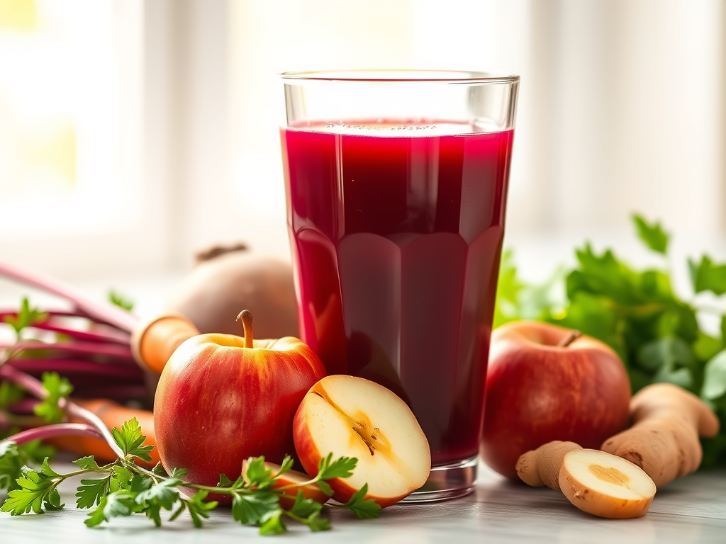 Este jugo es conocido como el «jugo milagroso» debido a su amplia gama de beneficios para la salud. Combina el poder antioxidante de la remolacha, las propiedades depurativas de la zanahoria y los nutrientes revitalizantes de la manzana. Consumir este jugo regularmente puede ayudarte a: