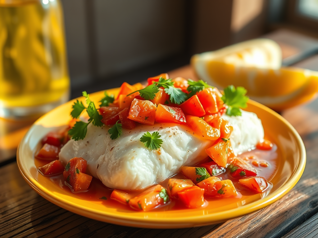 Servir la salsa sobre el filete de pescado y disfruta de este delicioso plato.