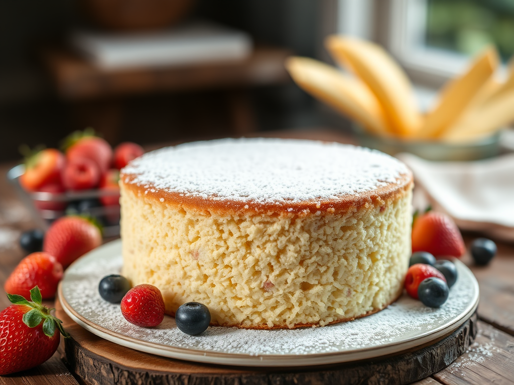 - Puedes decorar el bizcocho con azúcar glas, frutas frescas o un glaseado de tu preferencia.