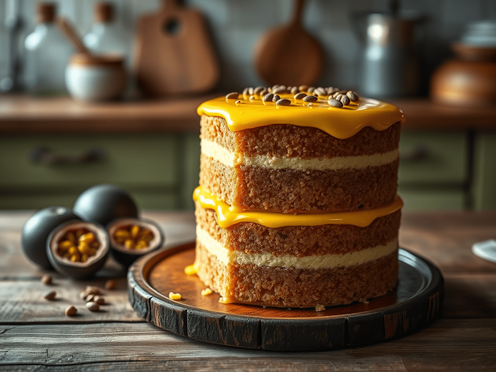- Cocina la pulpa de maracuyá con el azúcar durante 5 minutos y deja entibiar. Vierte sobre el pastel como baño final.