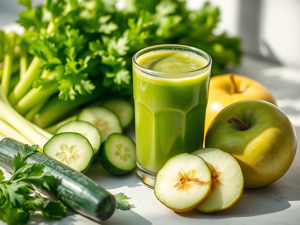 El jugo verde proporciona energía, mejora la digestión, desinflama y aporta nutrientes esenciales para un bienestar óptimo.