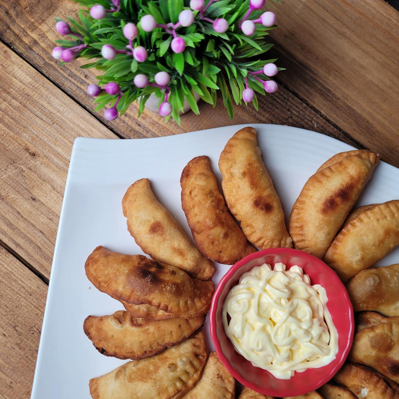 Empanadas de yuca: masa suave con relleno, fritas hasta doradas y crujientes.