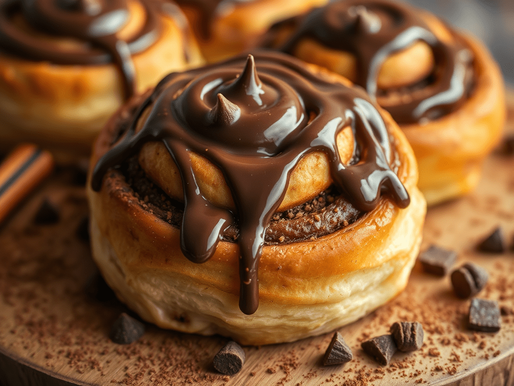 Receta de rollos de chocolate: masa suave, relleno de cacao y cobertura de chocolate.