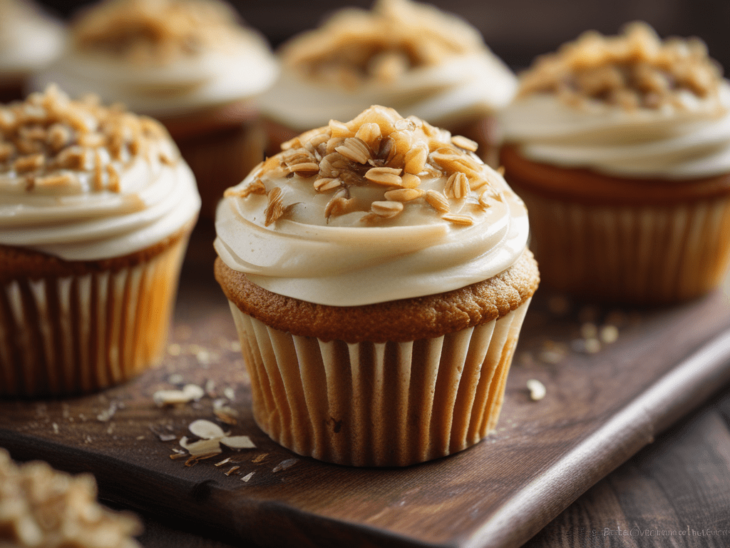 En un molde para cupcakes, coloque los revestimientos de papel. Precaliente el horno a 400°F. Mezcle azúcar, margarina, huevos y plátanos. Agregue miel, ingredientes secos y hornee.